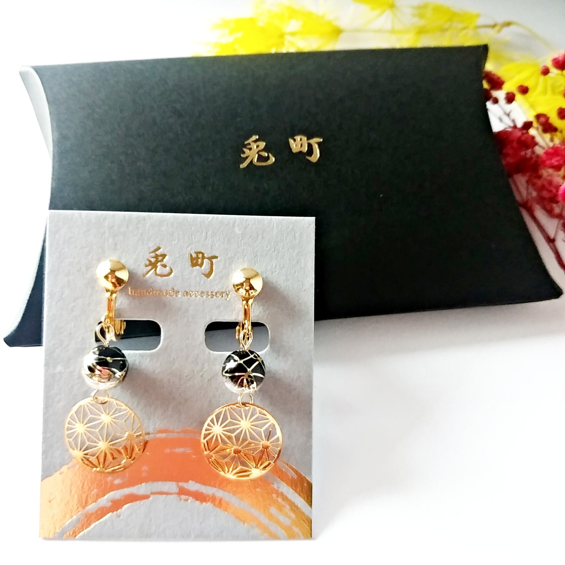 ⚠️麻の葉模様にメタル、イヤリングのゴールドの(皮膚に触れない)部分に真鍮が使用されていますので、長時間触れないようご注意下さい。